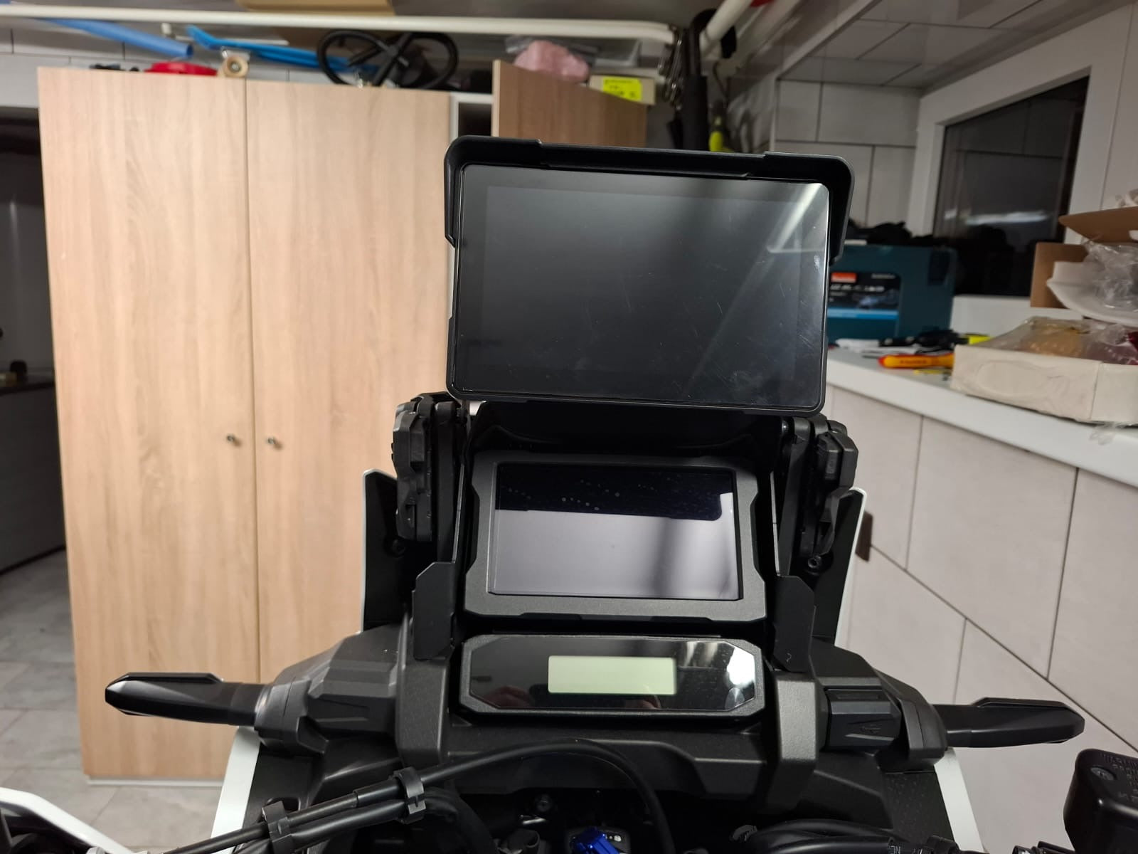 The mount offers a cleaner, more elegant integration on your motorcycle, providing a stronger and more stable attachment than the original system. It positions your screen within your line of sight, allowing you to keep your eyes on the road for safer riding.
